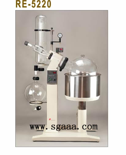 RE-5220旋轉(zhuǎn)蒸發(fā)器 產(chǎn)品簡(jiǎn)介: RE-5220旋轉(zhuǎn)蒸發(fā)器落地式旋轉(zhuǎn)蒸發(fā)器,采用大容量,大孔徑旋轉(zhuǎn)蒸發(fā)瓶,增大蒸發(fā)面積,在減壓中置于水浴中,廣泛應(yīng)用于樣品的規(guī);瘽饪s、干燥、提取、回收等,是化工、醫(yī)藥、食品、環(huán)保、高校等科研實(shí)驗(yàn)及工業(yè)化批量生產(chǎn)理想的設(shè)備。 特點(diǎn): 1、主機(jī)部分:引進(jìn)國(guó)外先進(jìn)的傳動(dòng)系統(tǒng),結(jié)構(gòu)合理,經(jīng)久耐用,實(shí)用性強(qiáng). 2、控制和溫度部分:引進(jìn)國(guó)外先進(jìn)的變頻控制系統(tǒng)、溫控系統(tǒng),確保儀器精確性能。 3、水浴鍋:選用進(jìn)口不銹鋼一次沖壓成形,立式自動(dòng)升降 4、密封部件:選用國(guó)外較新的PTFE材料經(jīng)特殊工藝技術(shù)處理,增強(qiáng)了密封性、防腐性、耐磨性。 5、主體結(jié)構(gòu):采用優(yōu)質(zhì)鋁合金及不銹鋼材料,更加完善和提高儀器的合理性能。