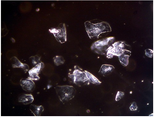 我們常用的的顯微鏡是屬于亮視野顯微鏡,背景是亮的。而這圖的背景是暗的,所以稱為暗視野。暗視野顯微鏡的特點(diǎn)是可以分辨極微小顆粒的存在或運(yùn)動(dòng)(解像力約是0.004um),一般的顯微鏡較大解像力約(0.2um),這樣的差別來自入射光線的特性。